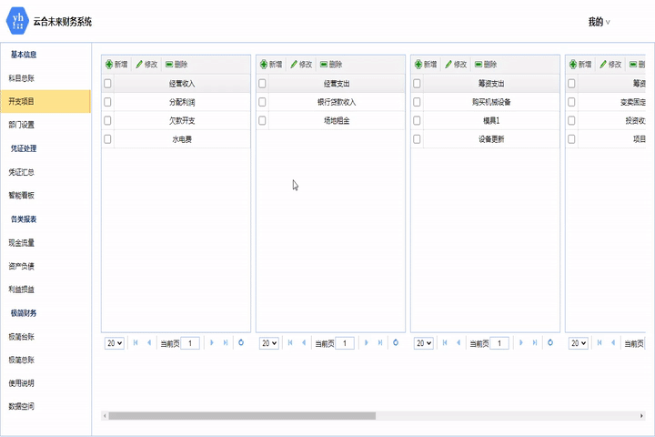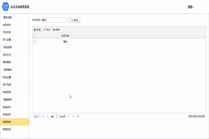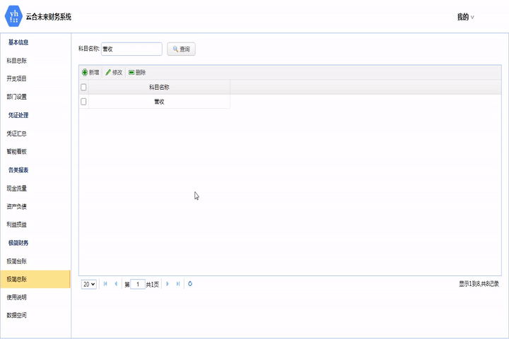此模塊為極簡臺賬的配置表,配置對應的科目類型。擁有查詢功能。