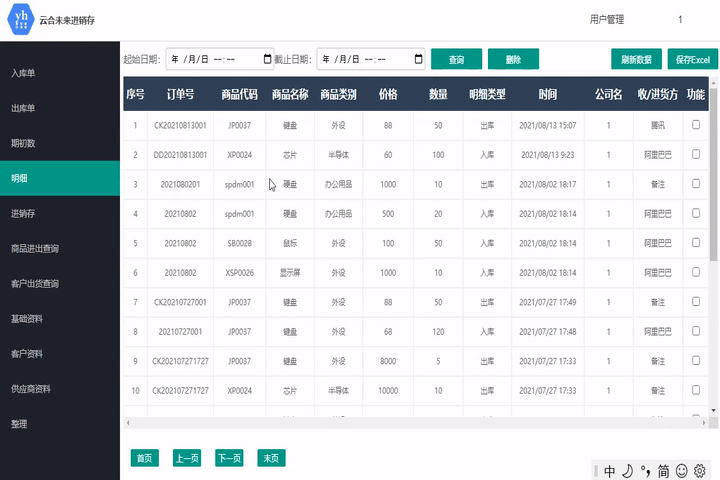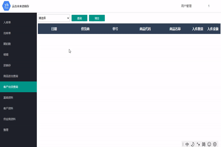 此模塊記錄所有入庫、出庫信息,方便用戶管理??砂凑杖掌谶M行查詢。