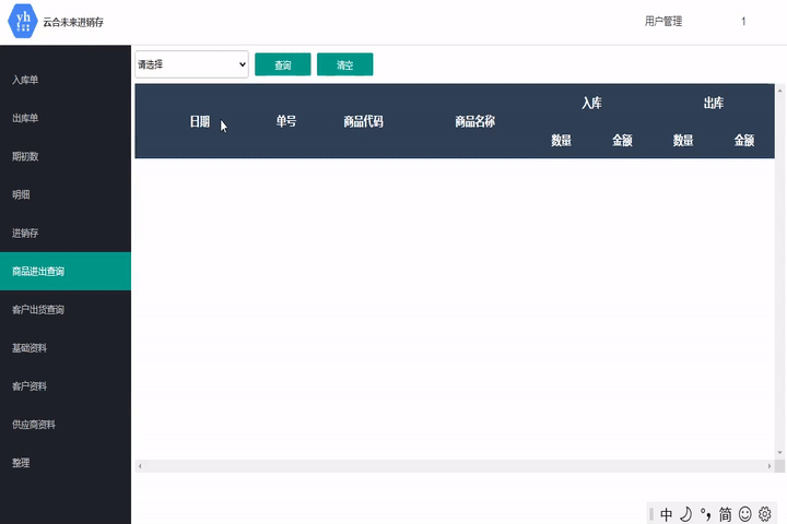 此模塊用于查詢商品的所有入庫、出庫信息。